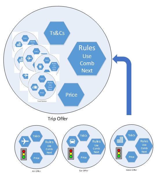 Offer and order management are crucial components in various industries, especially in sectors like airlines, retail, and e-commerce. What is lacking is any industry standard that defines how this should work across all travel sectors. There are siloed definitions such as for airlines, but even there, not an open standard (licensing fees and restrictions) . It would help conceptually to think of an offer as a container or shopping basket. Whether online or in a store you do not have multiple baskets based on the products you wish to buy. The shopping basket is agnostic to what the product is, the price and the terms and conditions (rules) of purchase. The product in the basket, say a toy, conveys its description, price and rules such as “not suitable for children under 4”. A retailer may bundle products into a single offer, again with descriptions, prices, and rules of the bundle.